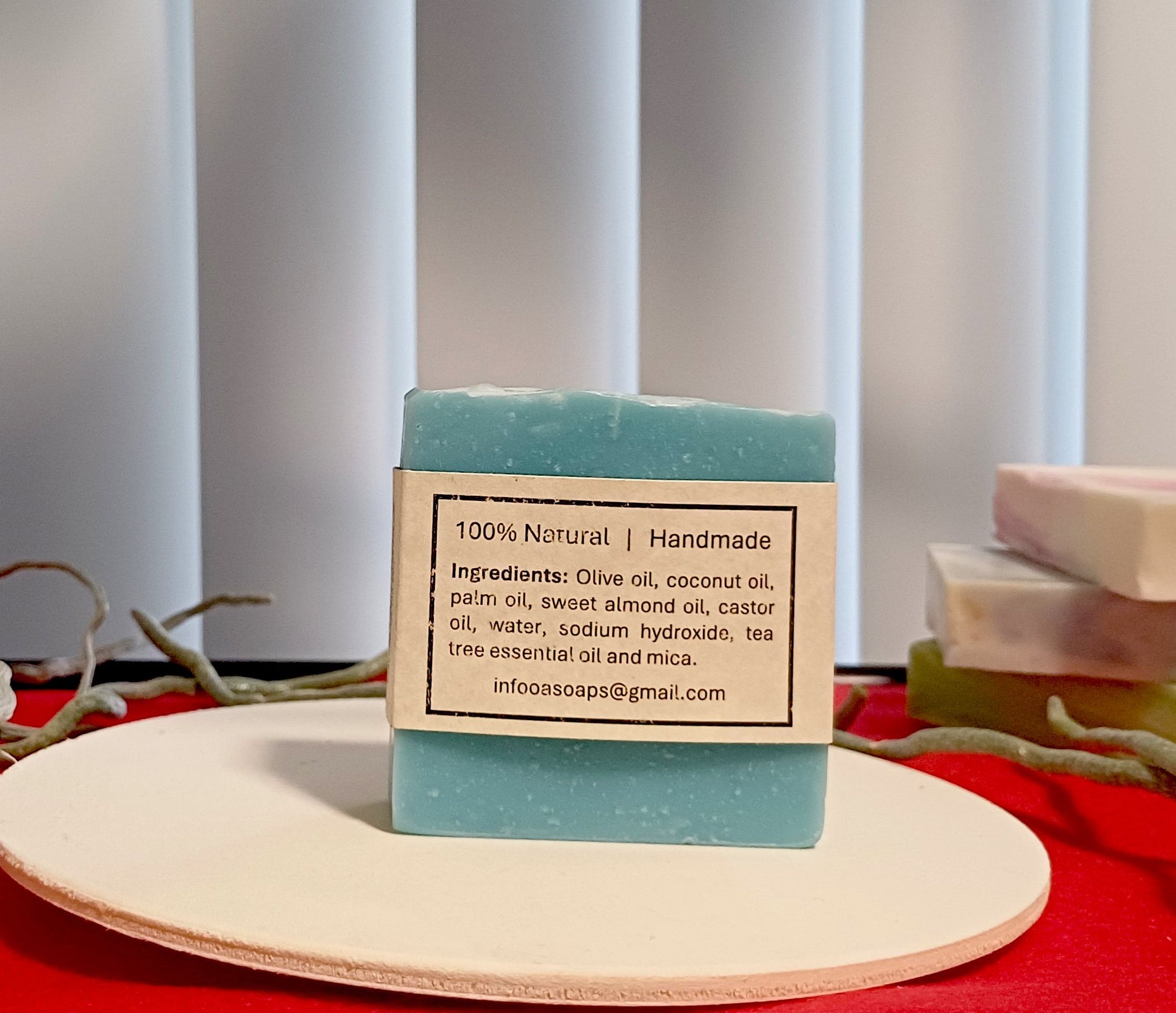 Refresh your skin with Tea tree, a handcrafted soap infused with tea tree essential oil. Known for its natural properties, tea tree oil helps soothe trouble skin and promote a healthy complexion.